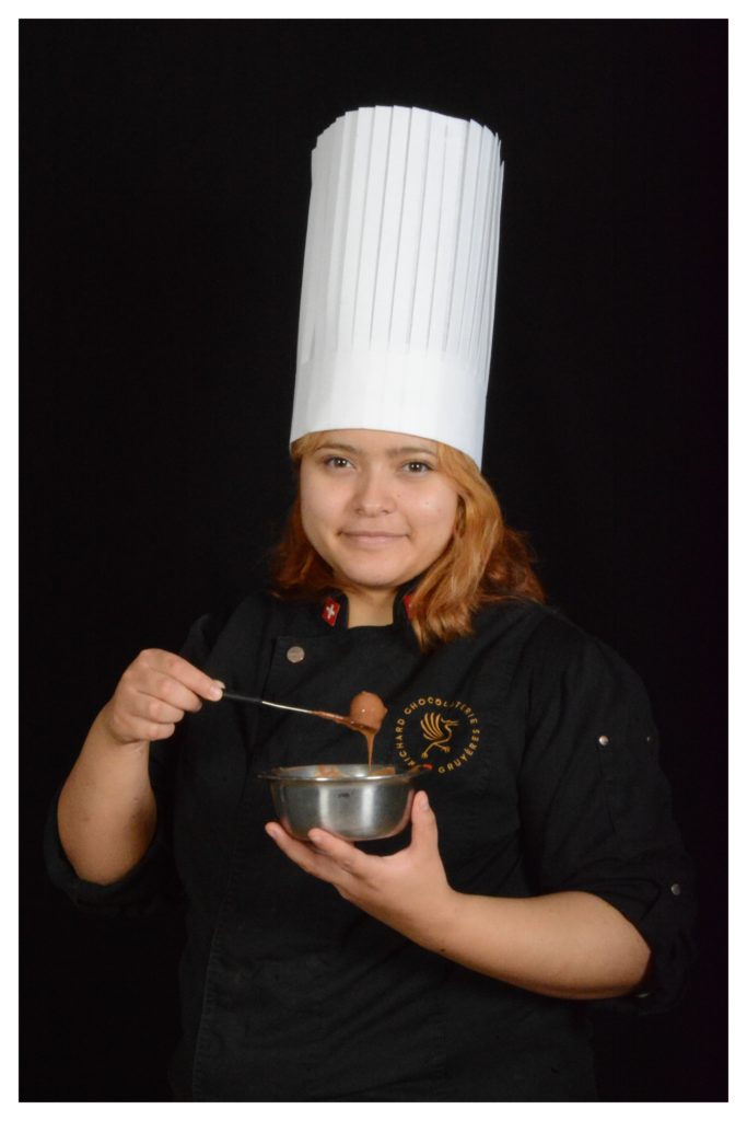 Par la suite, j’ai effectué mon complément confiseur à la Chocolaterie de Gruyères, avec l‘aide de Richard Uldry, mon patron, dont je suis très reconnaissante. Son engagement m’a motivé à participer au concours.
